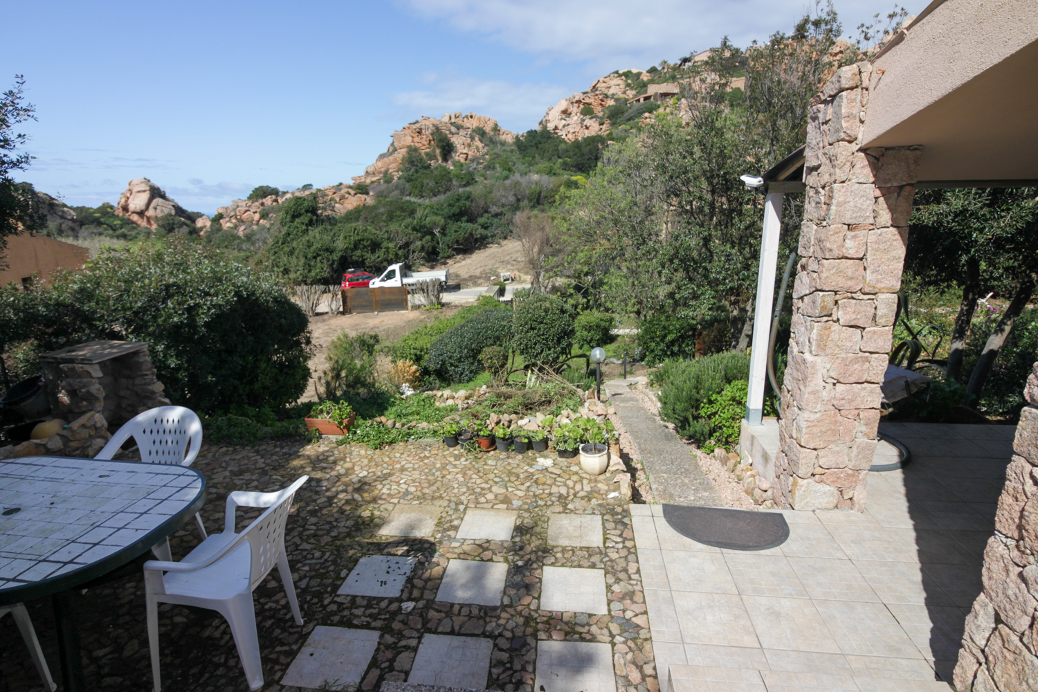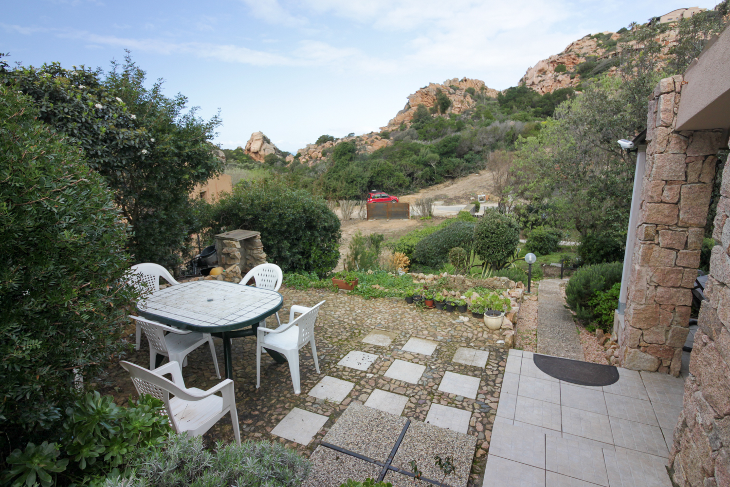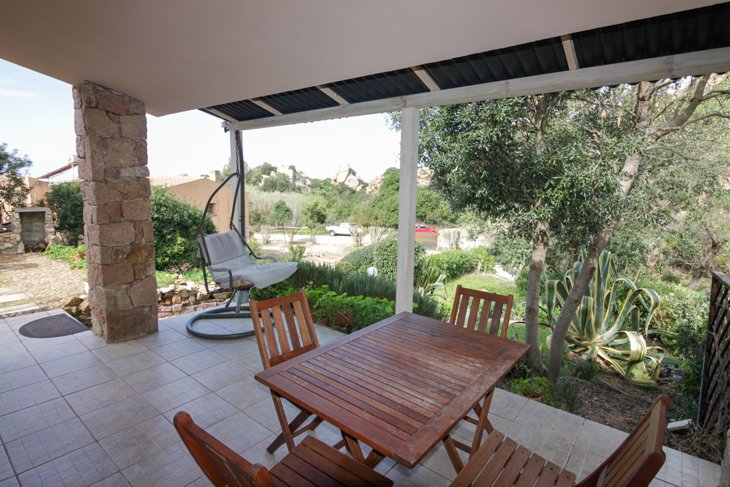 The property is fully furnished and move-in ready. Upon entering, you are welcomed into a bright living area with open kitchen, which flows seamlessly into a covered veranda. From here, you overlook the garden and the impressive rock formations that make this region so unique. The veranda is an extension of the living space and is perfect for long summer evenings, alfresco dinners or simply enjoying the peace and quiet.