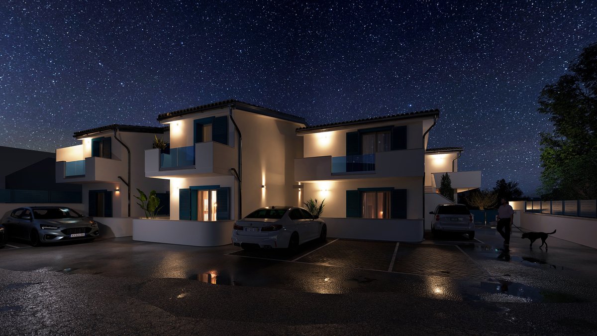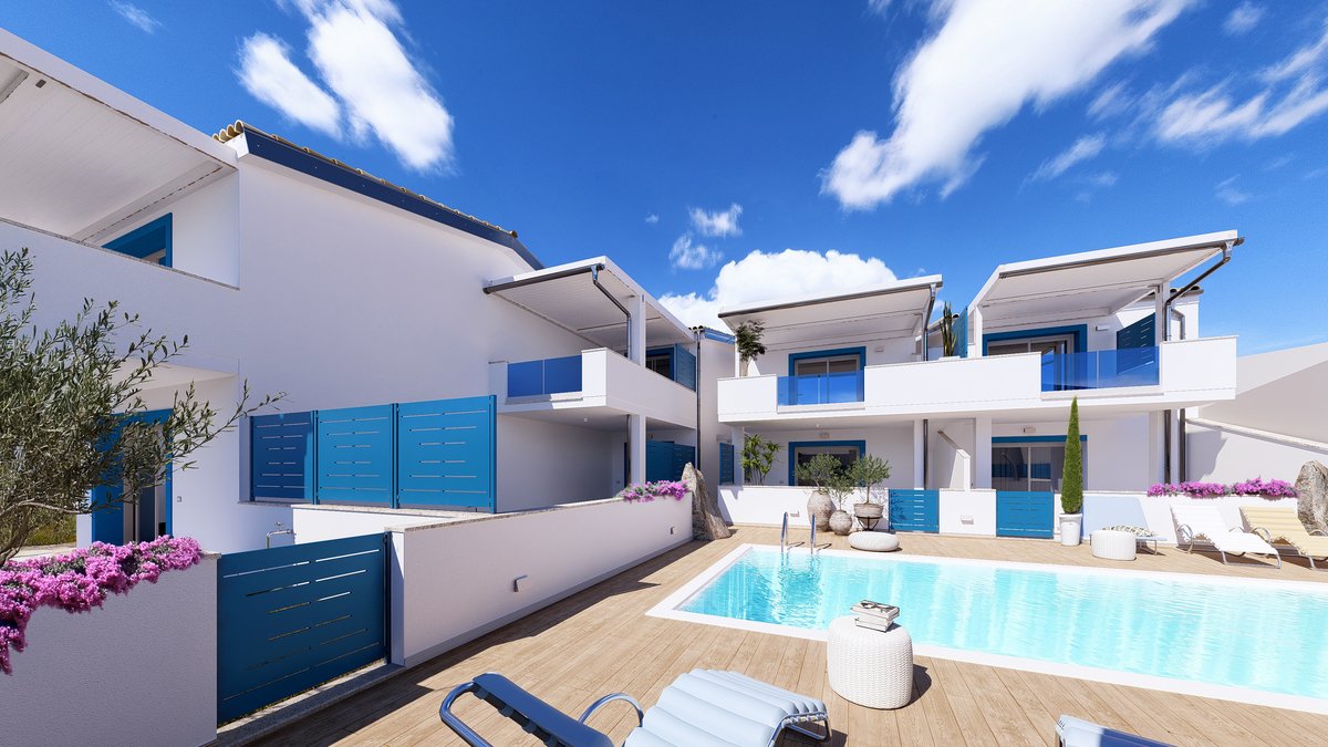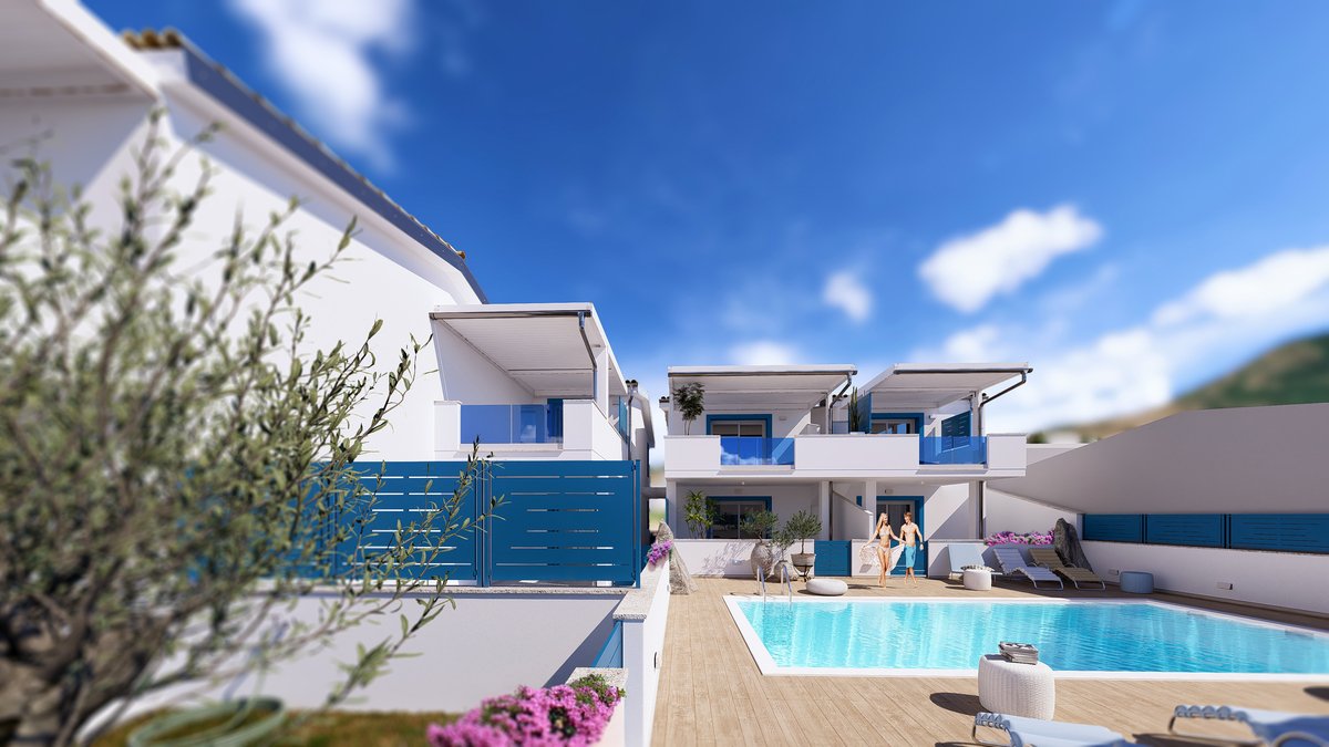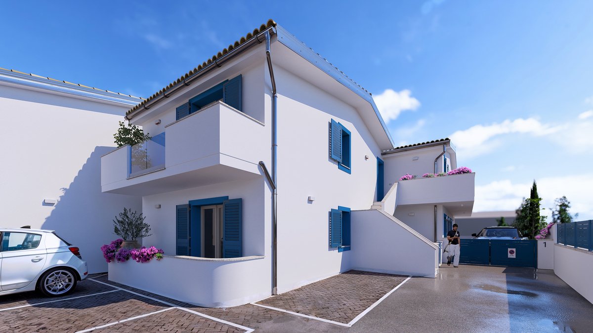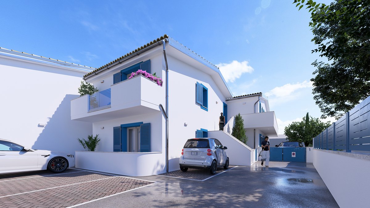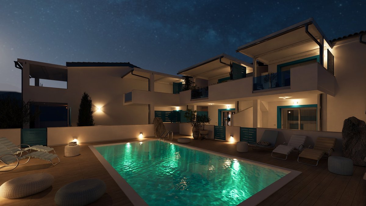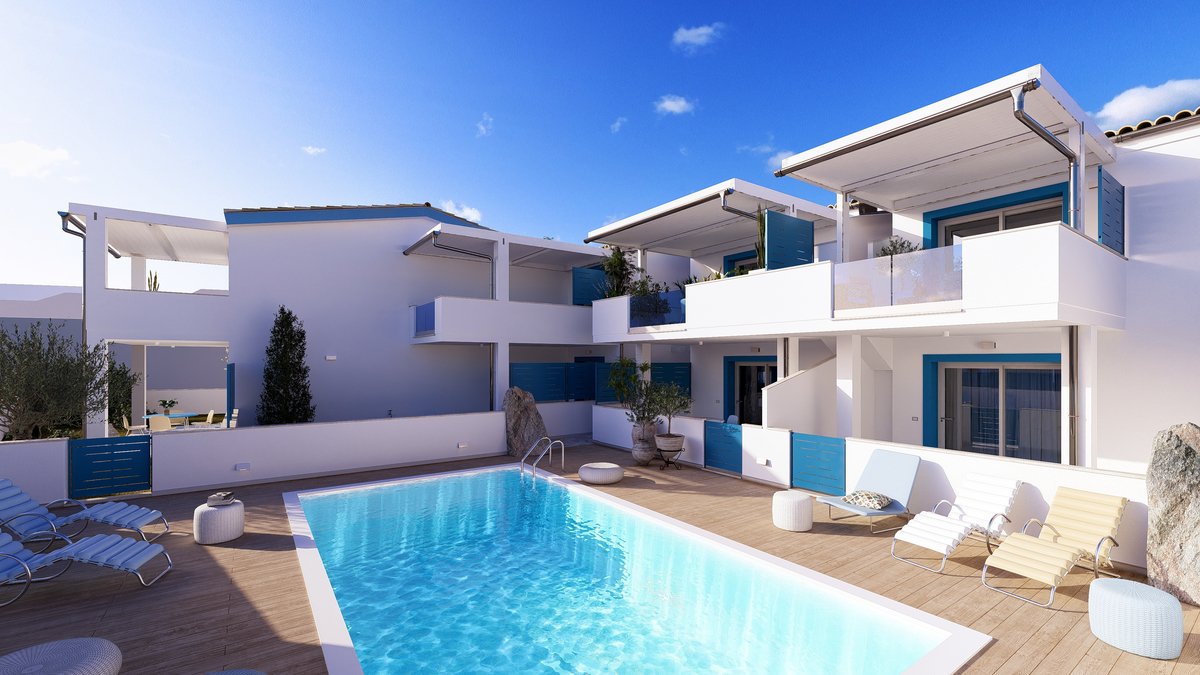 Exclusive holiday complex of 22 modern units in Isola Rossa, within walking distance of the beach and services. Each unit offers 2 bedrooms, 2 bathrooms, a spacious living area, large veranda and private parking. High-quality finishes and a shared swimming pool. Completion 2027.