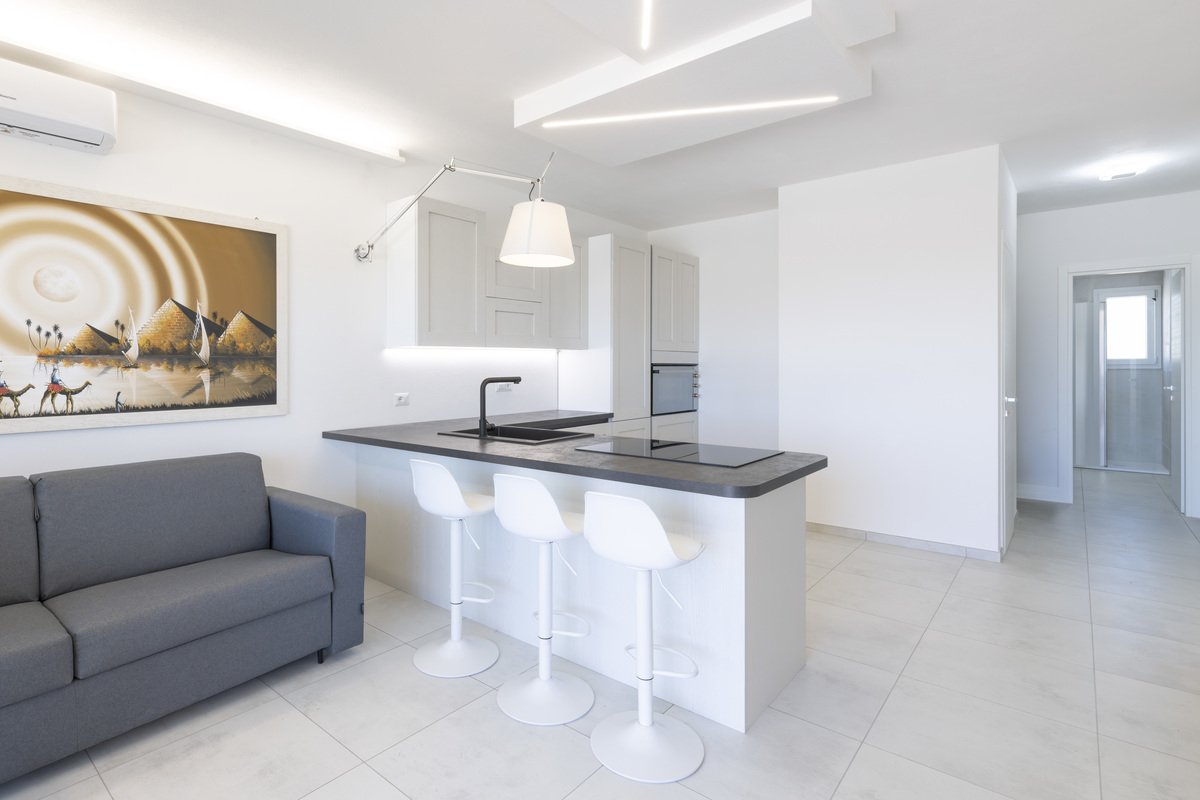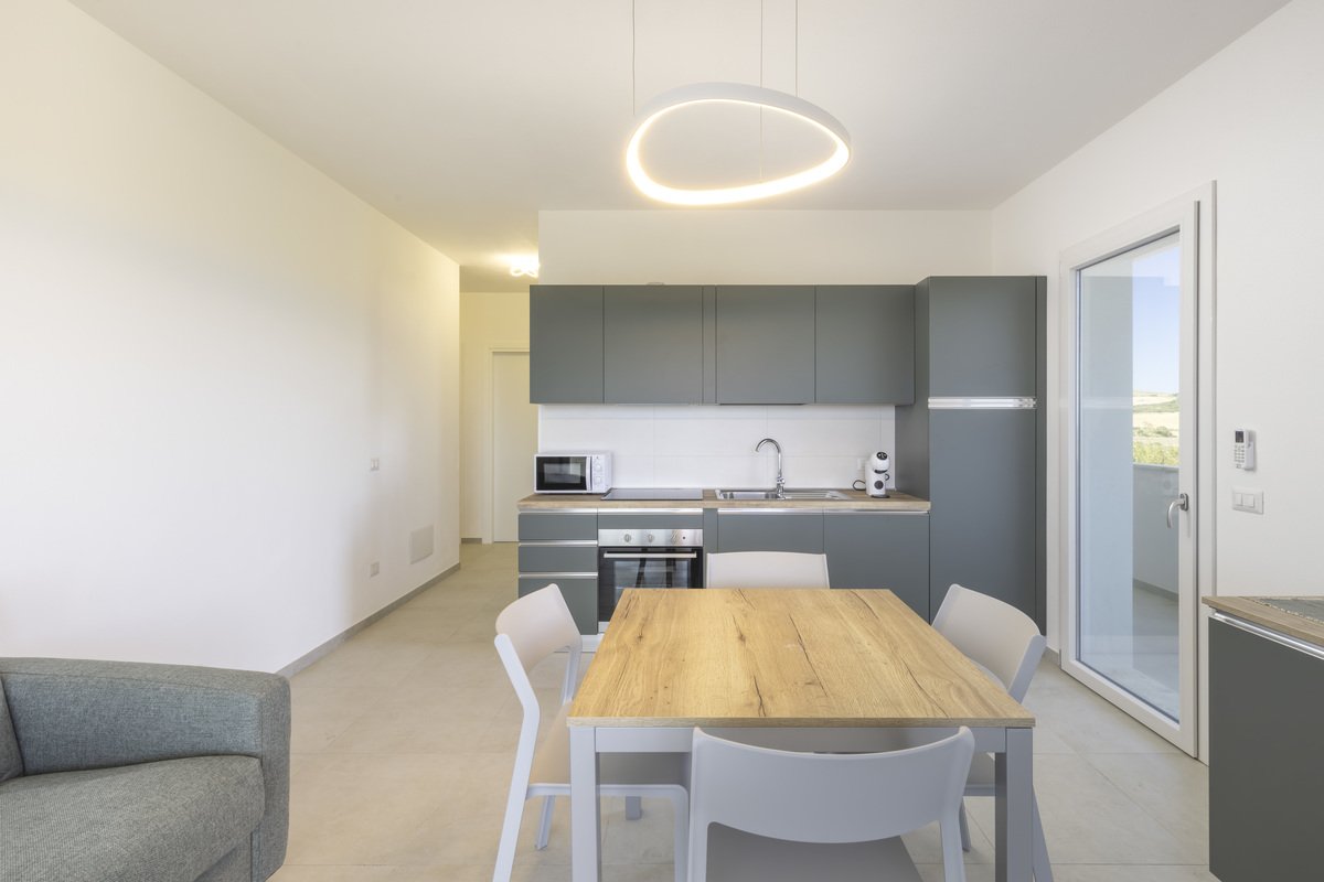 This modern new flat of about 70 m² is located within walking distance of the beach, within a small and quiet residential complex with only 8 units and shared swimming pool. The location is ideal for those who want to enjoy the sea, outdoor life and authentic Sardinia, without compromising on comfort and accessibility.