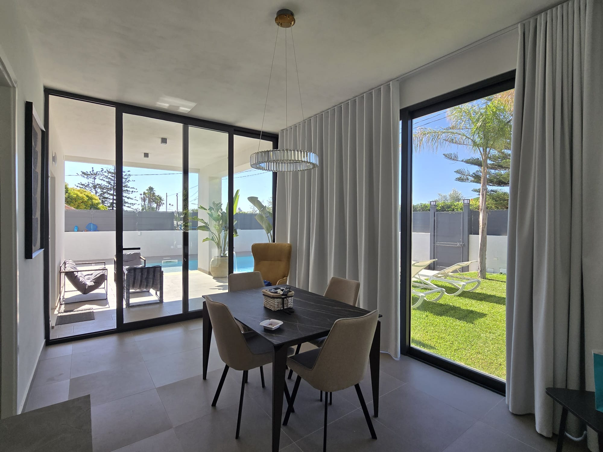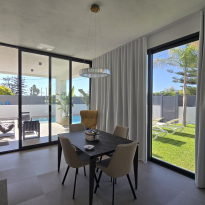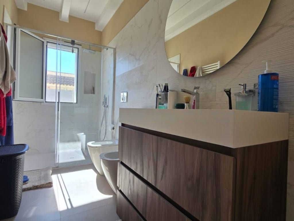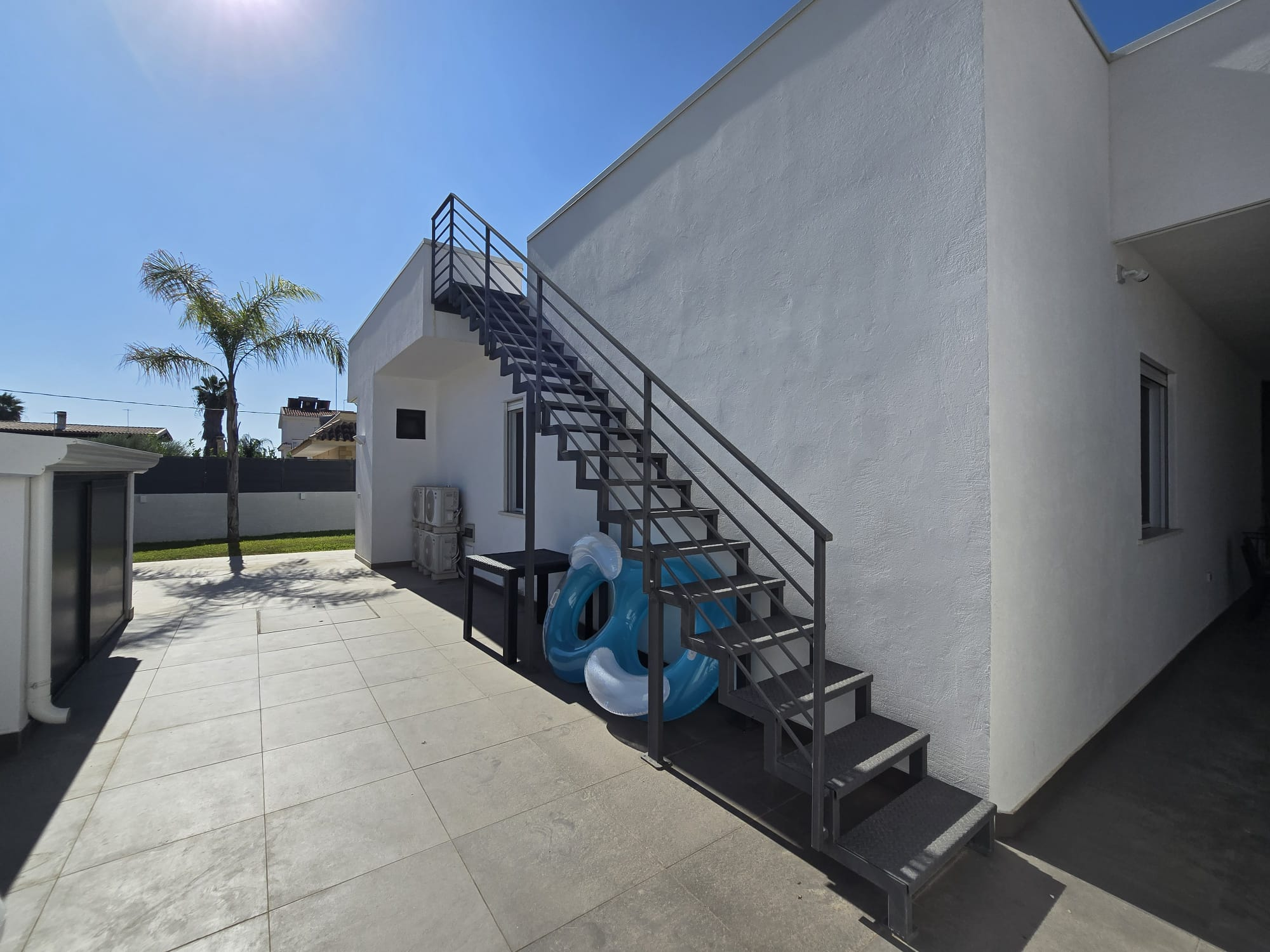 Exclusive villa in Siracusa just 500 metres from the beach. Ready to receive guests who want to enjoy the Ionian Sea in Siracusa in style. Main features; Spacious op kitchen and living room with lots of light, glass veranda with dining room and view of the pool - Second open veranda with direct view of the pool. The swimming pool with whirlpool is surrounded by a sunny solarium . The villa has 2 bedrooms, one with walk-in wardrobe and en suite bathroom. The laundry room is integrated into the kitchen. There is also a 30 m² annexe to use as a guest house, study or hobby room. Covered parking for 5 cars. There are breathtaking sea views from the panoramic roof terrace of more than 140 m². The villa is equipped with modern and comfortable habitat design furniture and appliances. All rooms are designed and finished to a high standard for maximum comfort. The house is located in a quiet and elegant residential area. A worthwhile investment both as a luxury main residence and also for rental as a holiday home in one of Sicily's most popular seaside resorts.