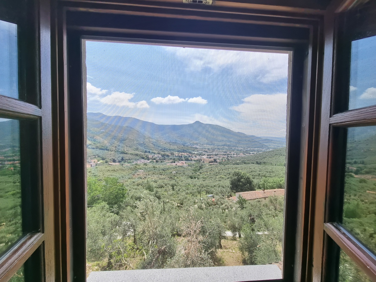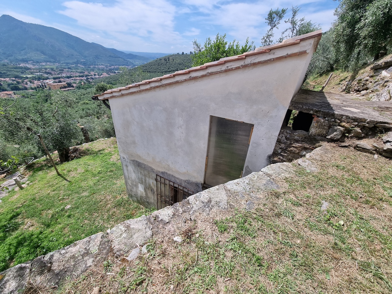 The house stands on a plot of approximately 9,800 m² (almost 1 hectare), with typical terraces built with dry stone walls, as seen in many areas around Monte Pisano. There are 450 productive olive trees on the land. In addition to the house described, there are two small outbuildings of 16 and 25 m², suitable for use as storage rooms, while at the rear of the house there is an extension with a storage room and space for the heating system. The house has running water and a well for irrigation, Wi-Fi, electricity, LPG gas, air conditioning, and a fireplace with heating function.