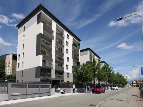 Sondrio in Valtellina: Residenza 'Meriggio' is a residential complex under construction just a few minutes from the centre of the cosy provincial town of Sondrio in the beautiful Valtellina valley a short distance from well-known ski resorts such as Valmalenco, Bormio and Livigno. Residenza Meriggio, realised with high-quality finishes, is designed to offer maximum energy savings thanks to state-of-the-art systems and will be certified in energy class A4 (the highest class required by current legislation). The real estate project consists of three buildings of seven upper floors with flats of different sizes, all with excellent views and southern exposure.